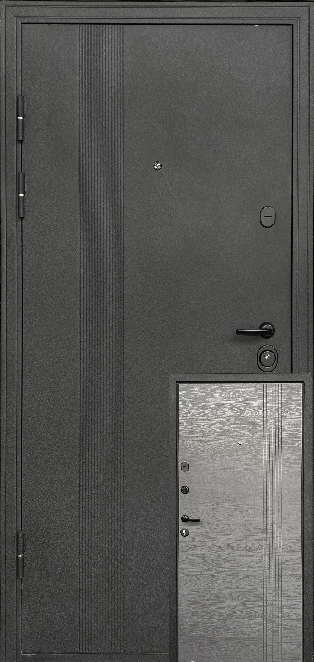 Зовнішній лист металу у покритті «чорний муар» декорований тисненням