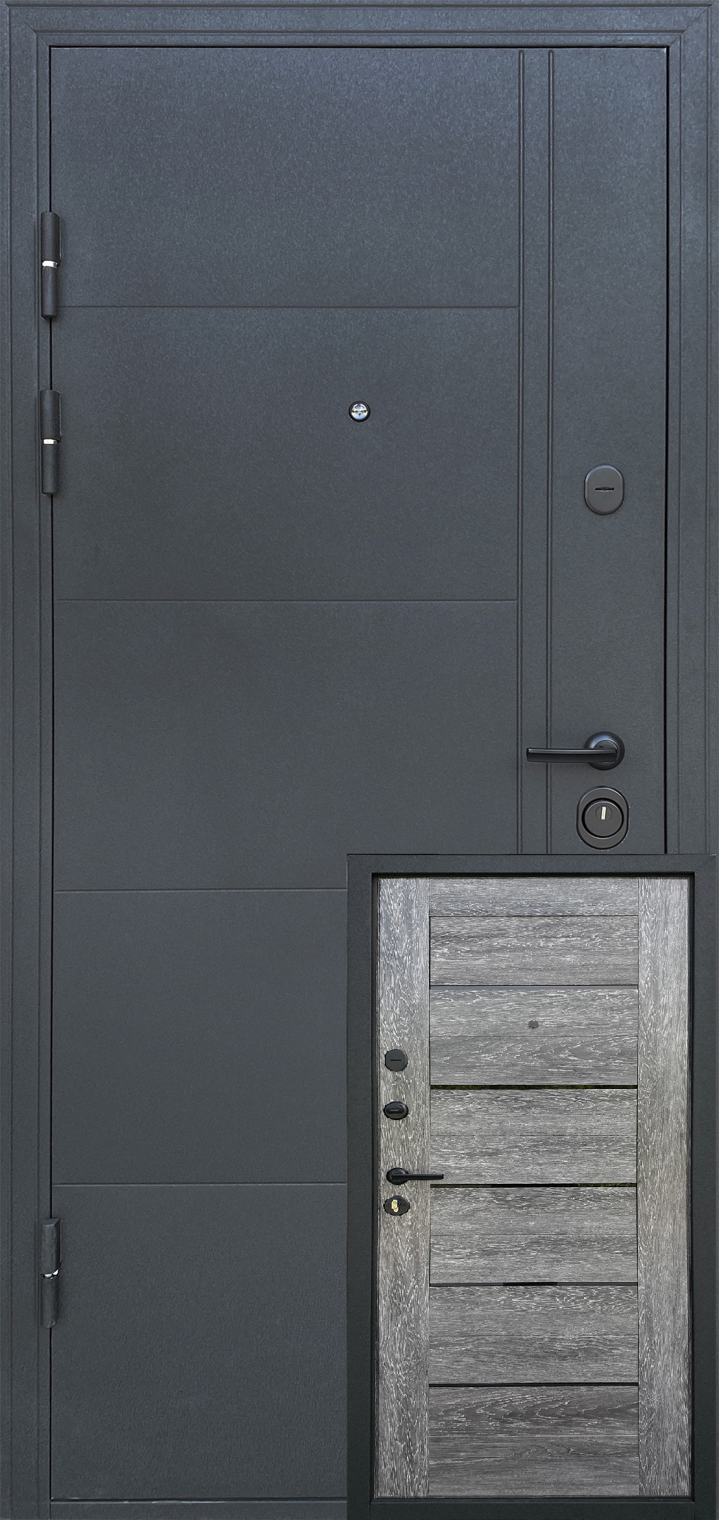 Зовнішній лист металу у покритті «чорний муар» декорований тисненням